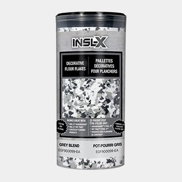 Des paillettes de différentes tailles et formes conçues pour créer un fini décoratif sur les planchers de garage.